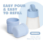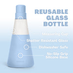 Cleancult Periwinkle Blue Shatter-Resistant Detergent Bottle is the perfect addition to your laundry routine. Our long-lasting silicone sleeve protects the glass and enhances your grip, plus our innovative cap measures up to three different detergent amounts.