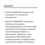Active Ingredients: Avobenzone 3%, Homosalate 12%, Octisalate 5%, Octocrylene 6%.