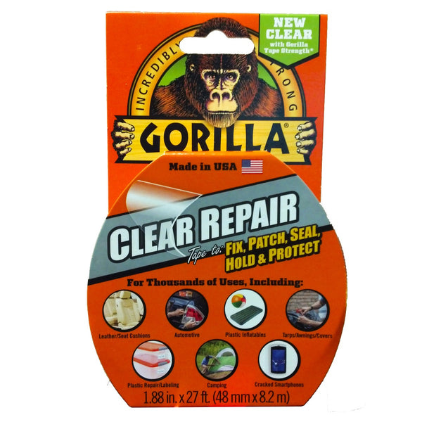 With and extra thick layer of adhesive and a tough, ultra clear backing, Gorilla Clear Repair is the perfect solution for almost any project! Indoors, outdoors, in the blazing sun or deep under water, this tape is guaranteed to stay put. The adhesive itself is the same as any other super strong Gorilla products, and the backing is both punishment-proven and crystal clear. Fix, patch, seal, hold, and protect and more on just about any surface imaginable.
