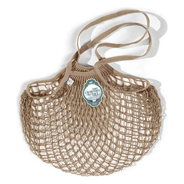Set of 2 Medium cotton net shopper. Easily fits a bottle of wine, a baguette, and a few items of fresh produce. Keep one (or a few) in your car, closet, or bag! Made in France. Based out of Normandy, France; Filt has been carefully crafting woven cotton bags, fishing nets, ropes, candle wicks, and much more since 1860. Their bags, also affectionally known filets, are lightweight, exceptionally durable, expandable, and stylish shopping totes. Often imitated but never duplicated, Filt Bags are an ideal choice for everyday errands and beach excursions alike. Exigez l'authentique filet Filt! Demand the authentic net bag! [Details] Specification Note: this is a set of two (2) bags Bag Size: 15.74" x 15.74" Handles Size: 10.5" Care instructions: Hang to dry.