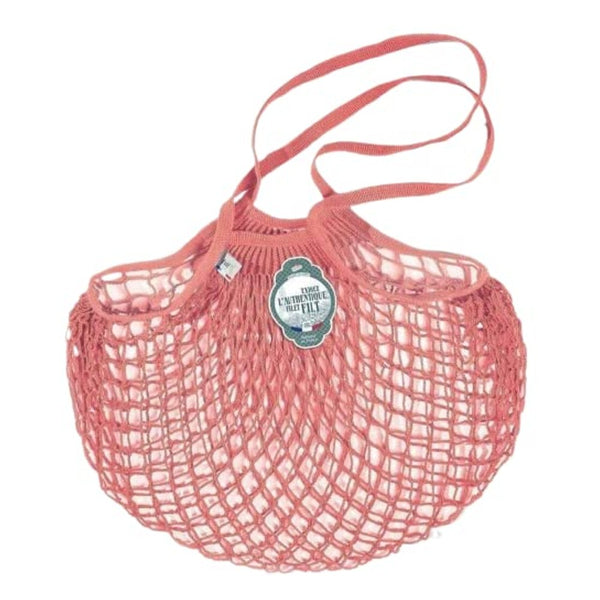 Set of 2 Medium cotton net shopper. Easily fits a bottle of wine, a baguette, and a few items of fresh produce. Keep one (or a few) in your car, closet, or bag! Made in France. Based out of Normandy, France; Filt has been carefully crafting woven cotton bags, fishing nets, ropes, candle wicks, and much more since 1860. Their bags, also affectionally known filets, are lightweight, exceptionally durable, expandable, and stylish shopping totes. Often imitated but never duplicated, Filt Bags are an ideal choice for everyday errands and beach excursions alike. Exigez l'authentique filet Filt! Demand the authentic net bag! [Details] Specification Note: this is a set of two (2) bags Bag Size: 15.74" x 15.74" Handles Size: 10.5" Care instructions: Hang to dry.