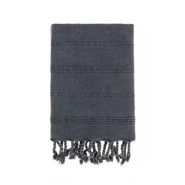 Bello Handwoven Turkish Beach Towel, Anthracite Stonewashed Peskir, Quick Dry Highly Absorbent Sand-Free Versatile for Beach, Spa, Home, Peshtemal Towel (15.75 x 37 Inches)