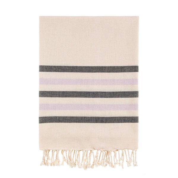 Bello Handwoven Turkish Beach Towel, Five Stripes Lilack & Black, Quick Dry Highly Absorbent Sand-Free Versatile for Beach, Spa, Home, Peshtemal Towel (39 x 66.9 Inches)